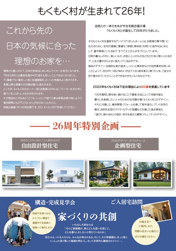 もくもく村thanks giving26周年!自然素材のすべてが分かる無添加住宅特設ブース